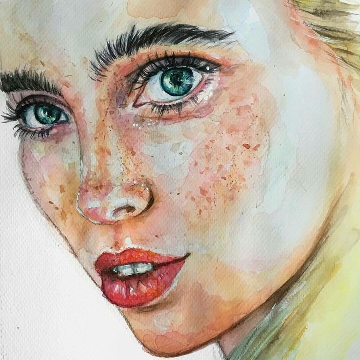 ![Лицо девушки акварелью]()