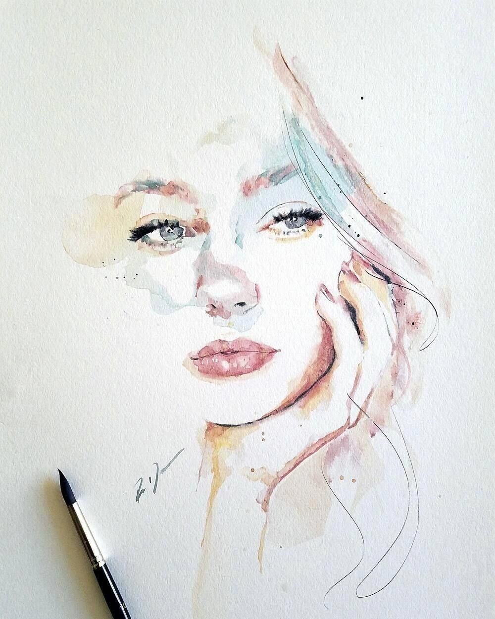 ![Акварельные портреты сильвии Пелиссеро]()