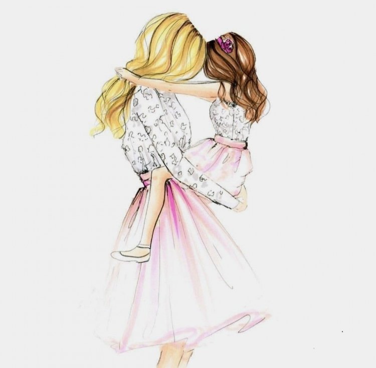 ![Мама и дочка рисунок]()