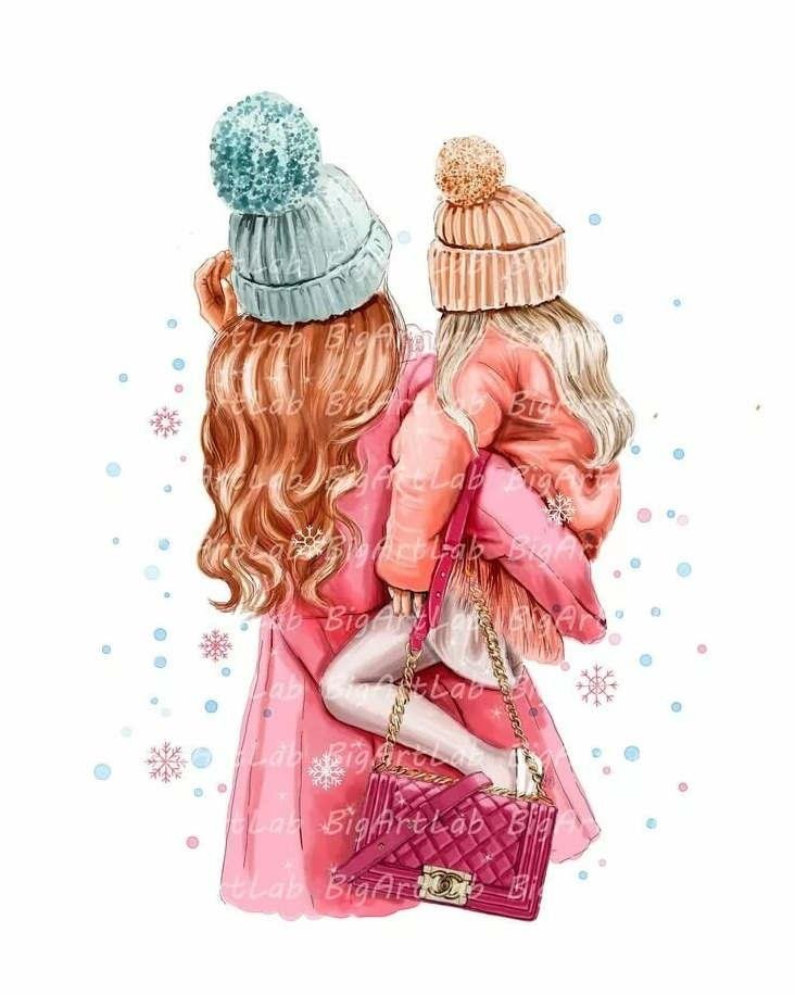 ![Фэшн иллюстрация мама и дочь]()