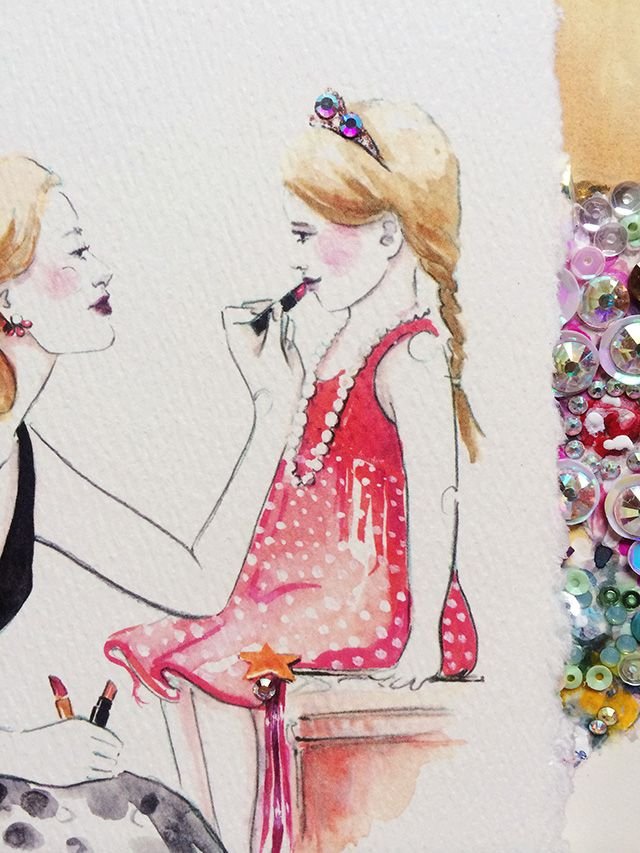 Фэшн иллюстрация мама и дочь