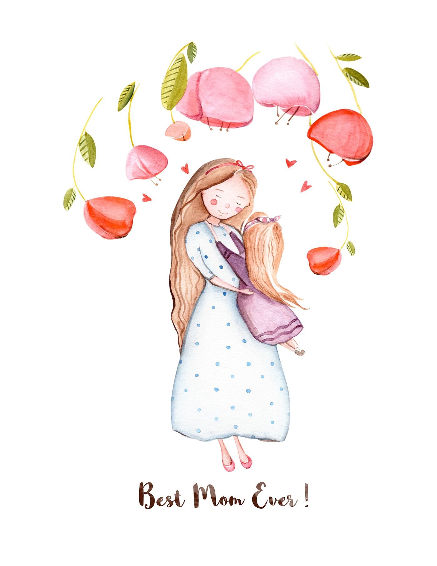 Акварельные открытки для мамы и Дочки
