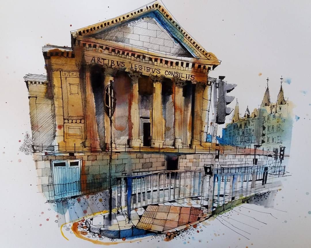 ![Скетч архитектура акварель Кристина Гаврилова]()
