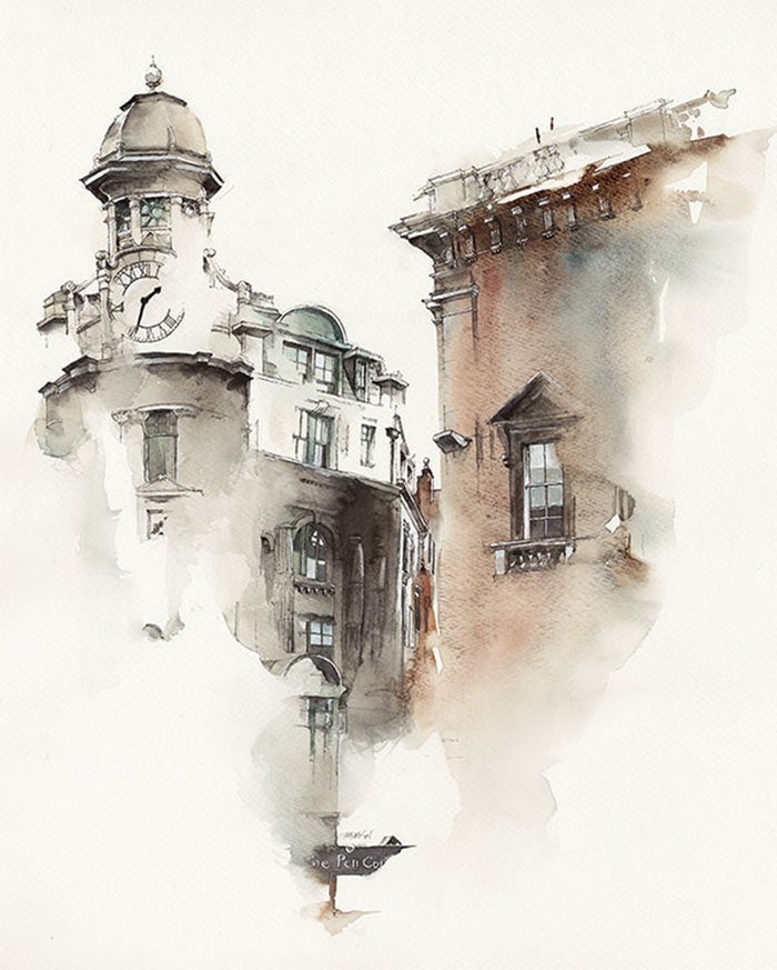 ![ФРАГМЕНТЫ архитектуры акварелью]()