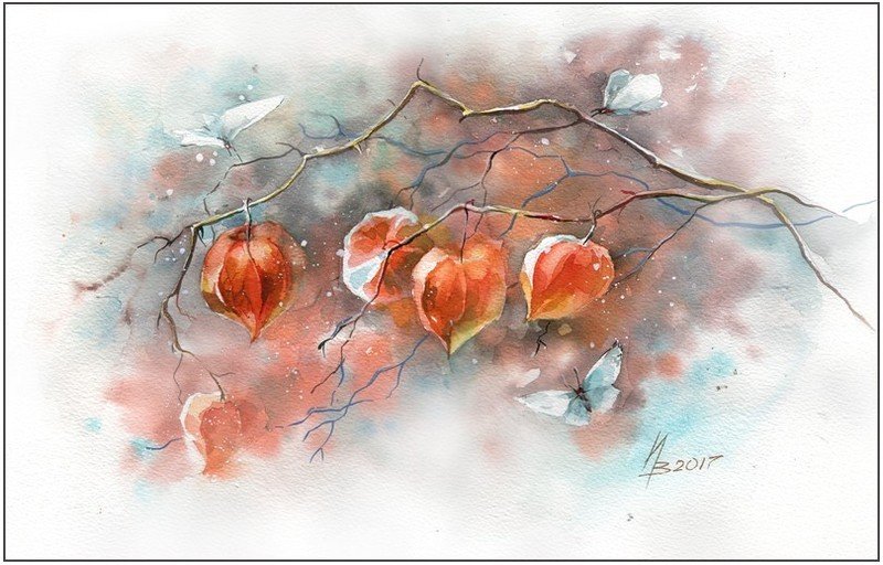 Физалис акварелью мастер класс