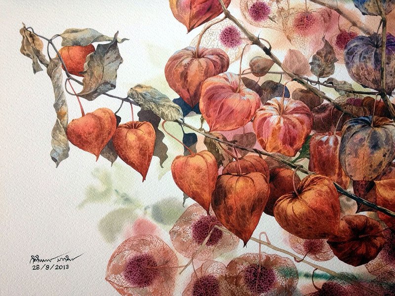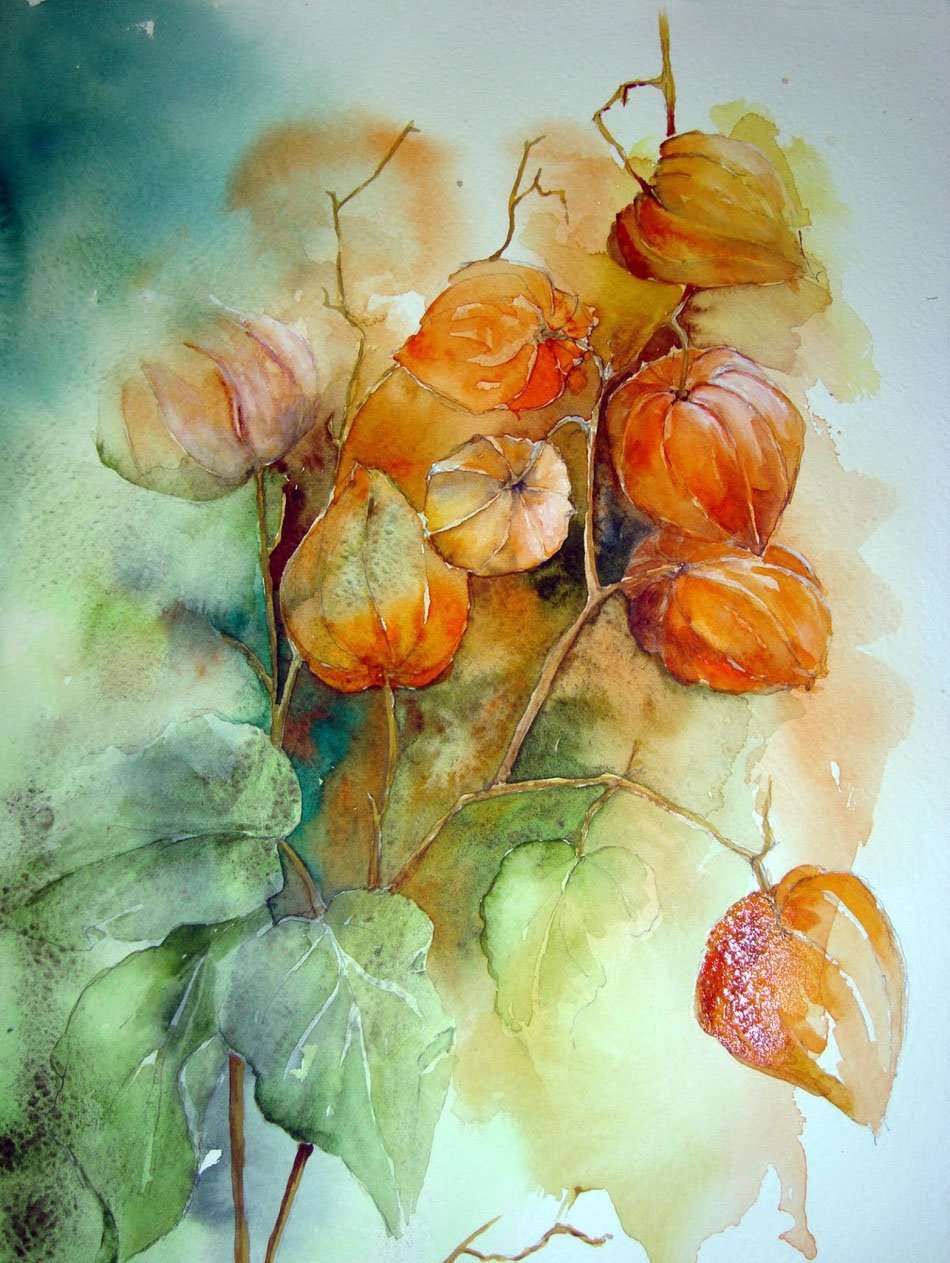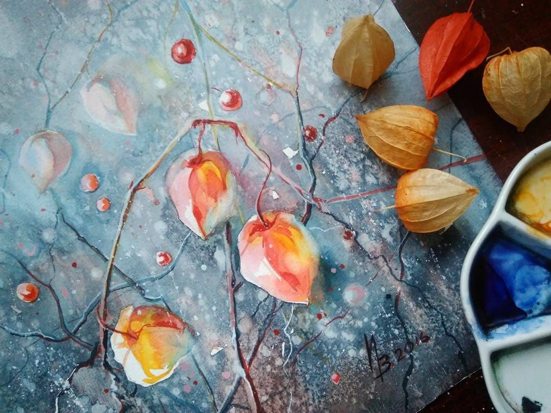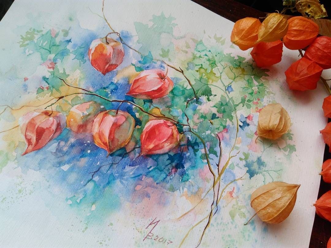 ![Физалис акварелью мастер класс]()