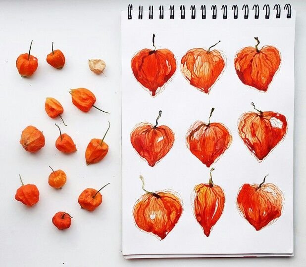 ![Рисуем физалис акварелью]()