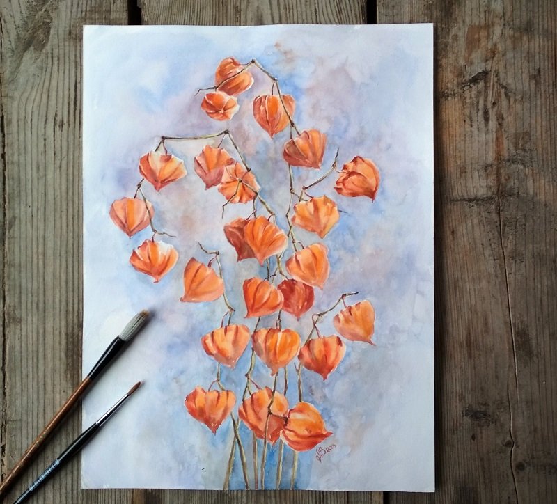 Физалис акварелью