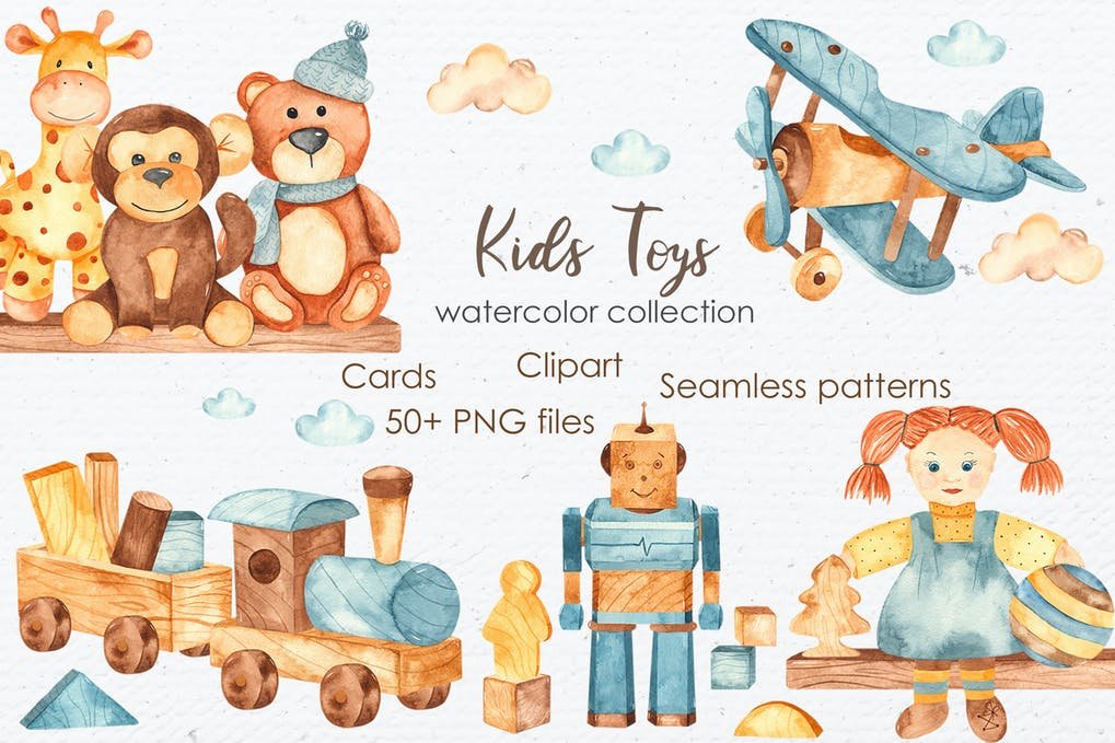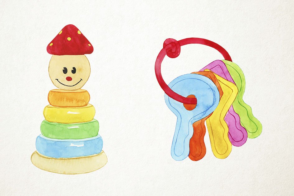 ![Акварельные детские игрушки]()