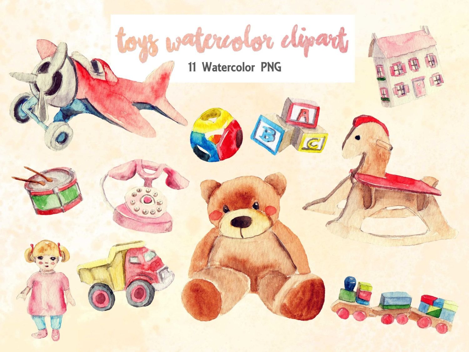 ![Детские игрушки акварель]()