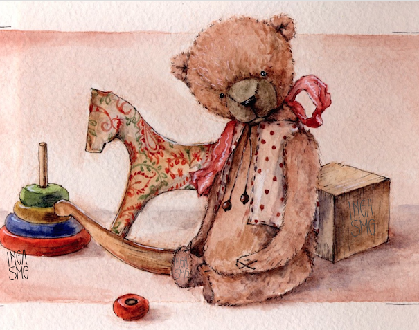![Плюшевый медведь акварелью]()