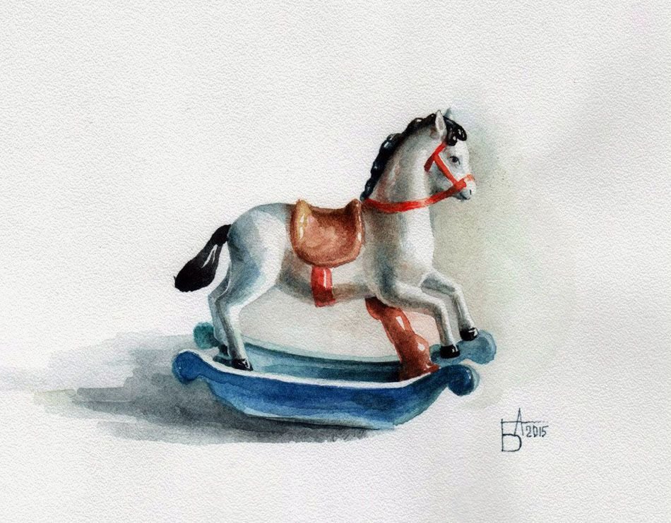 ![Лошадка качалка акварель]()