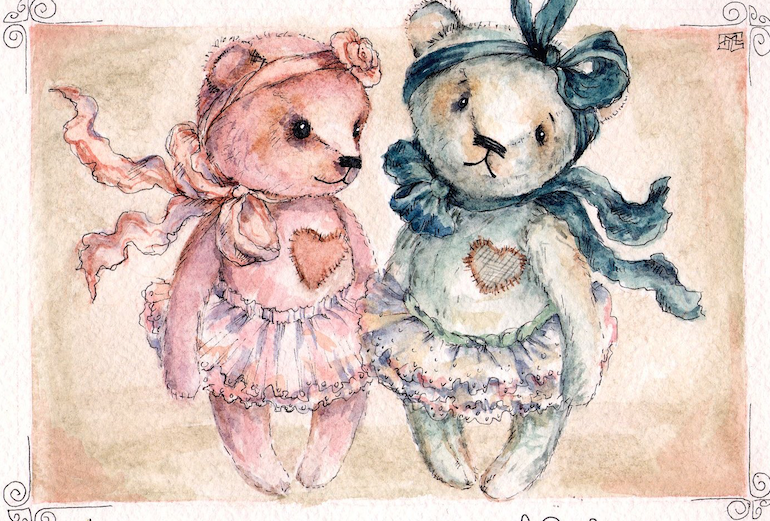 Плюшевые игрушки акварелью