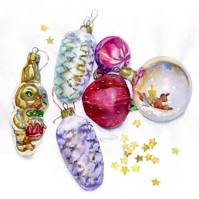 Новогодние игрушки акварель