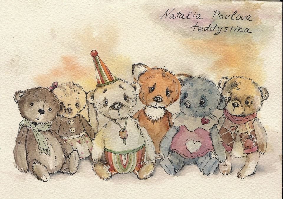 ![Плюшевые игрушки акварелью]()