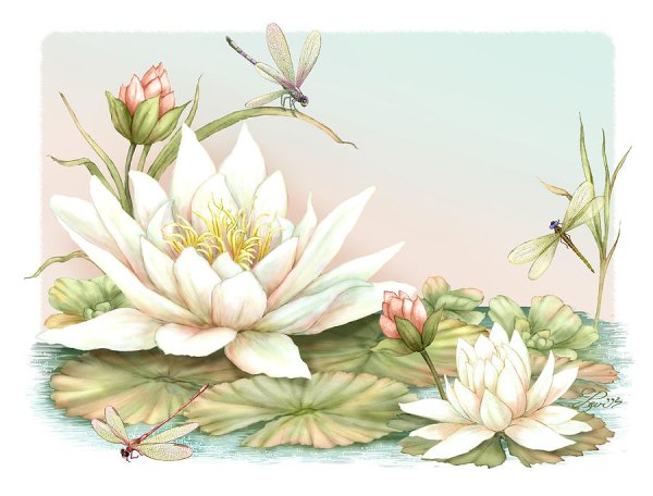 ![Кувшинки акварелью]()