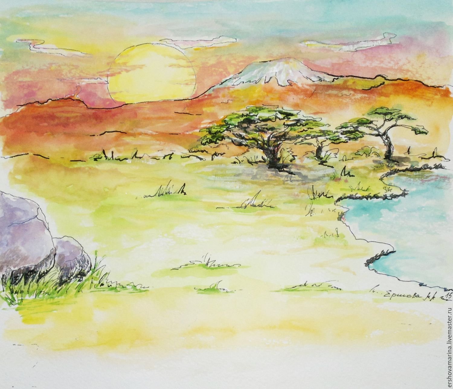 ![Африканские пейзажи акварелью]()