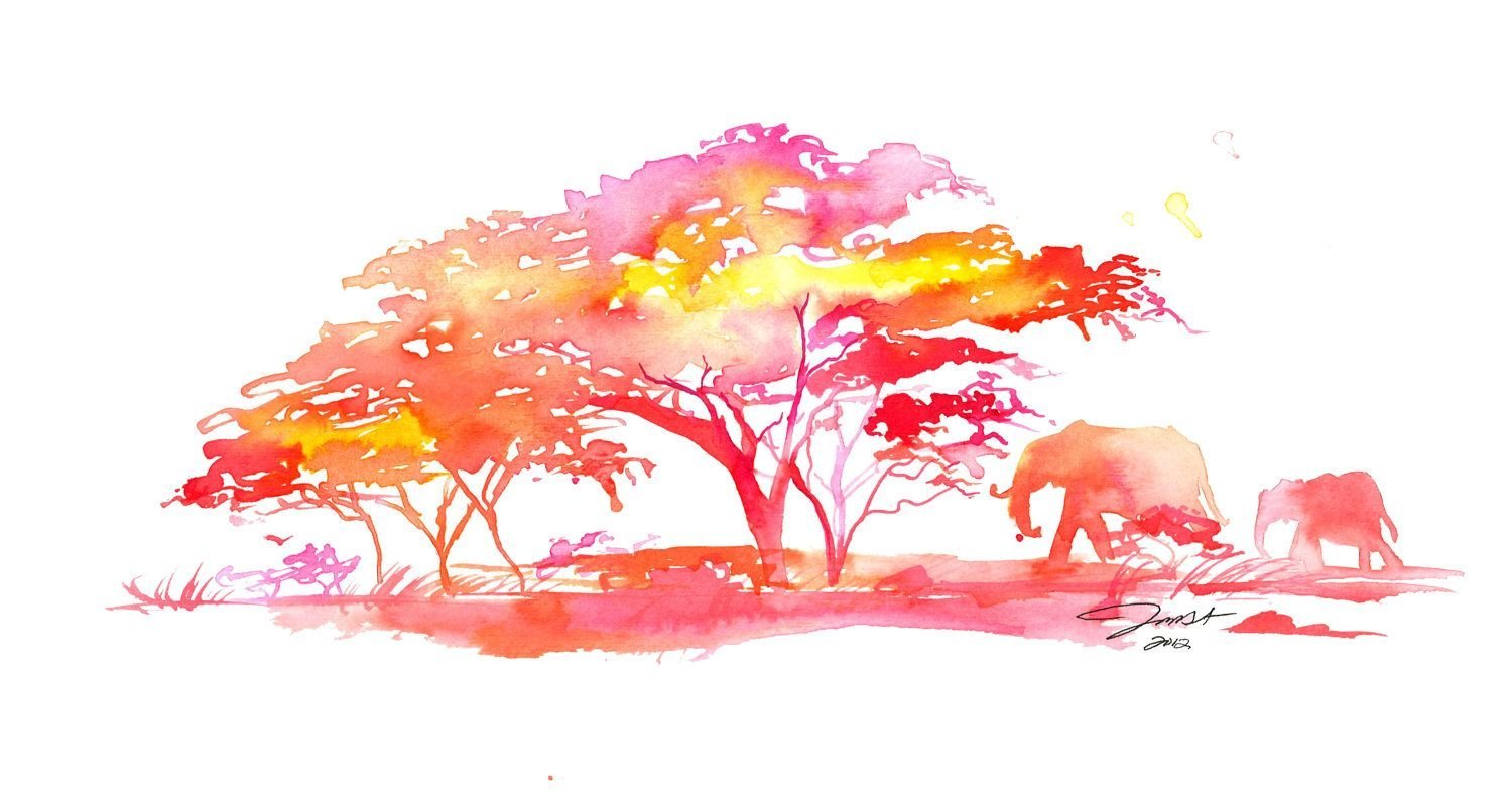 Африканские пейзажи акварелью