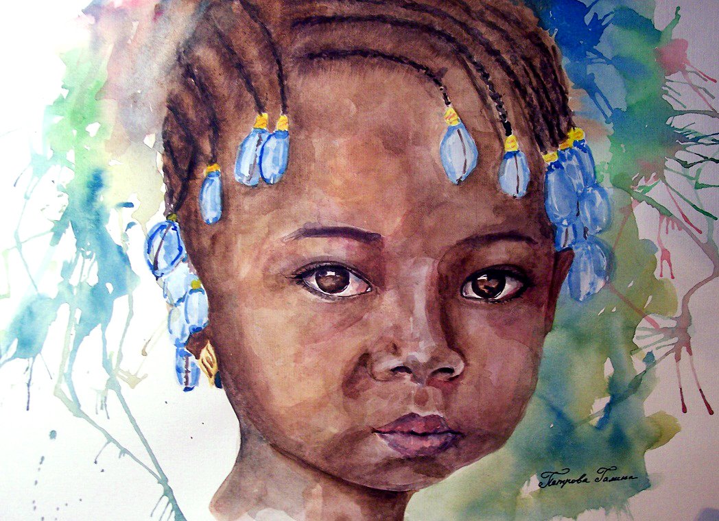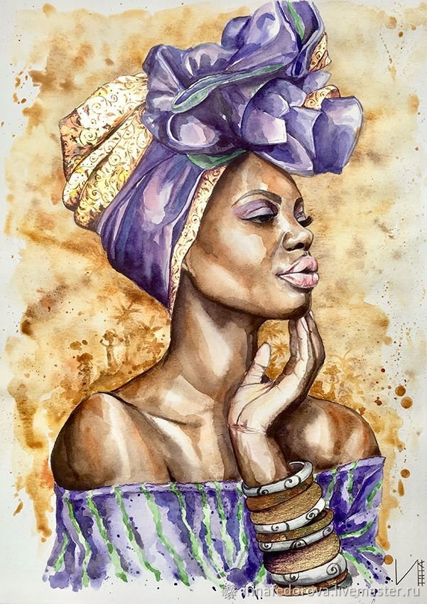 ![Африканка акварелью]()