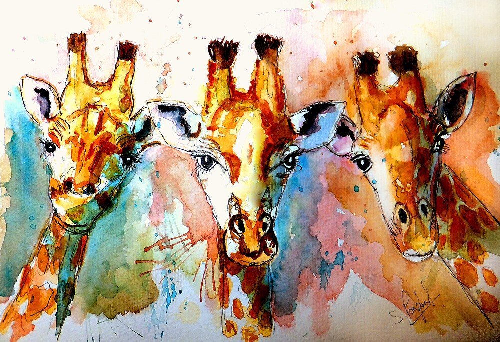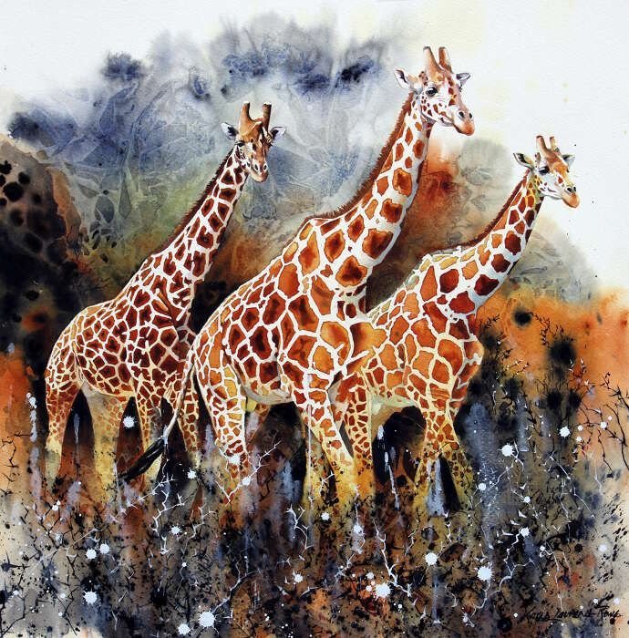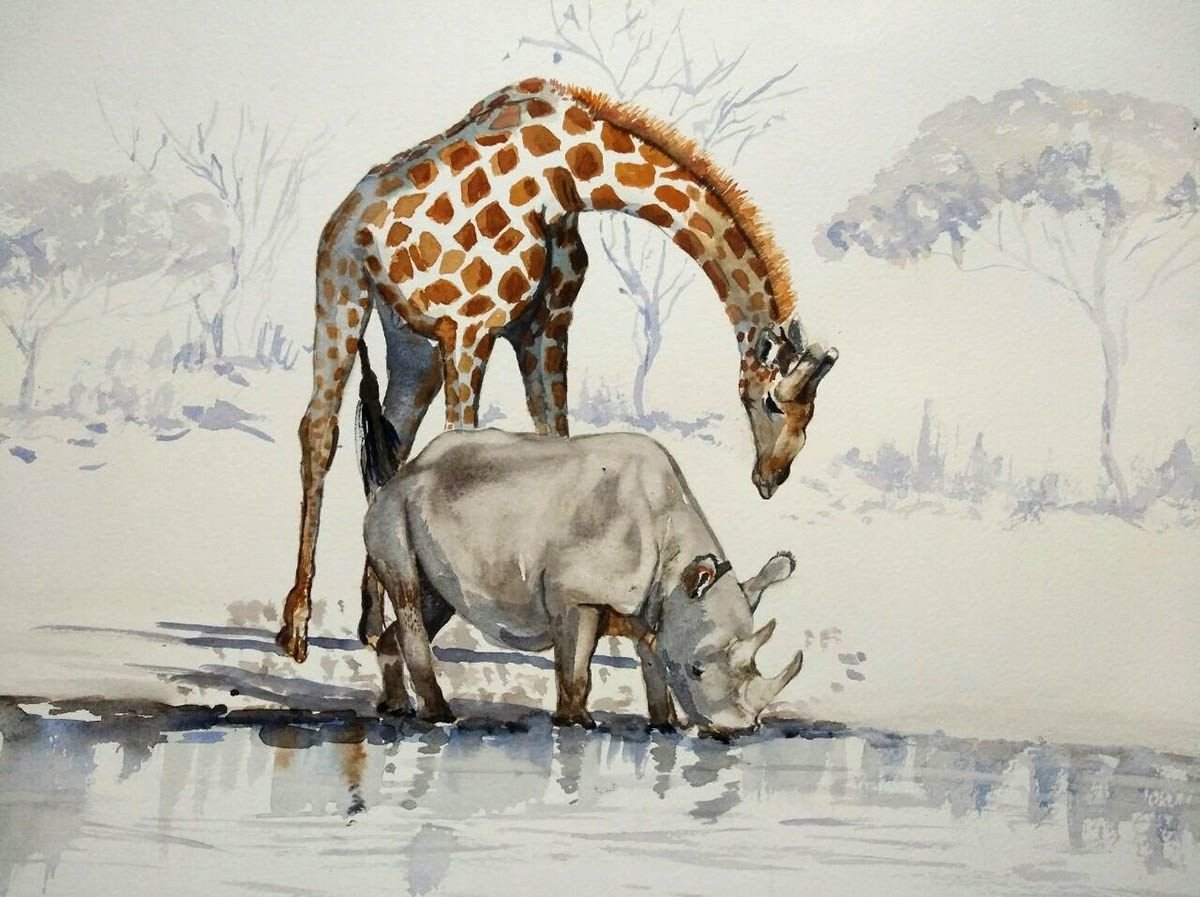 Африканские животные акварелью