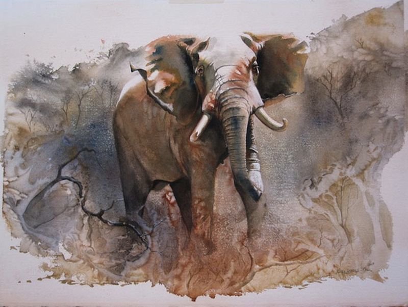 ![Слон акварелью]()