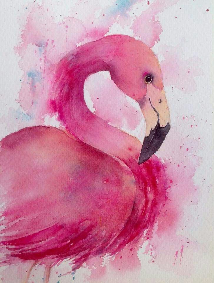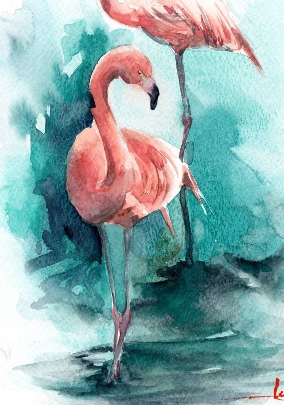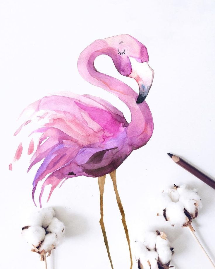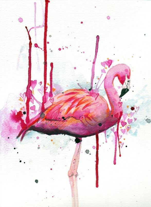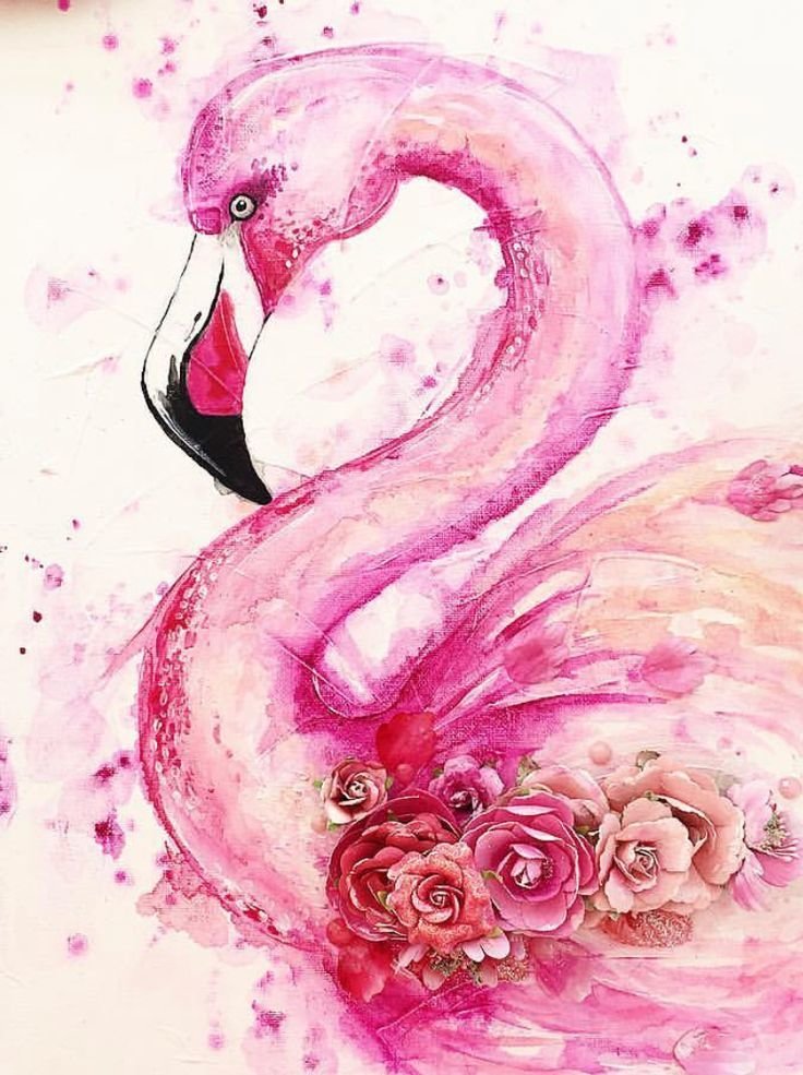 ![Фламинго картина акварелью]()