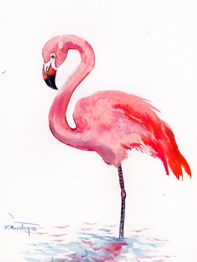 Рисунки акварелью для начинающих Фламинго