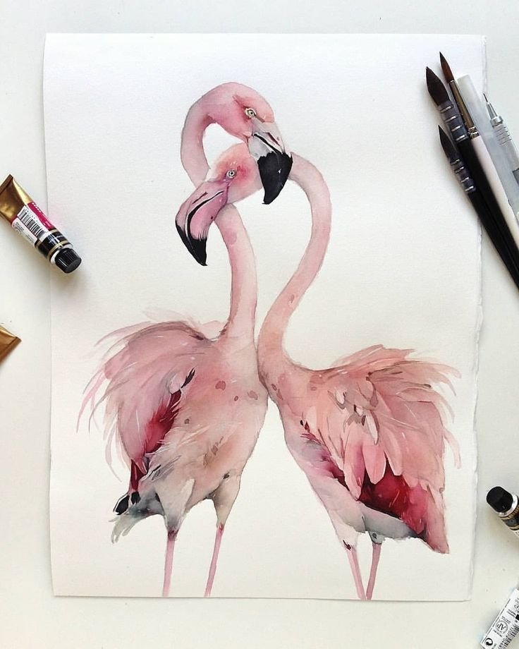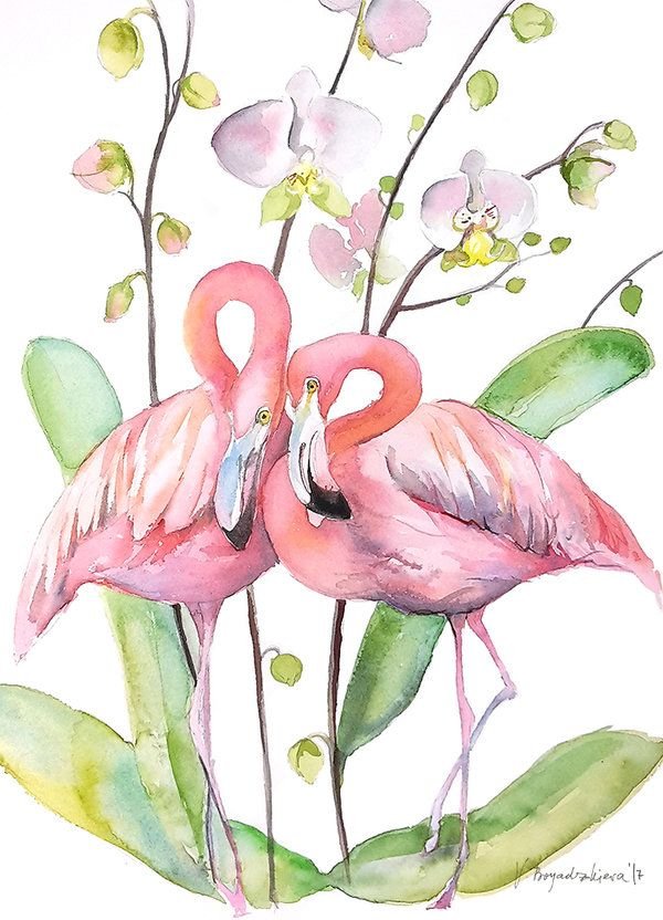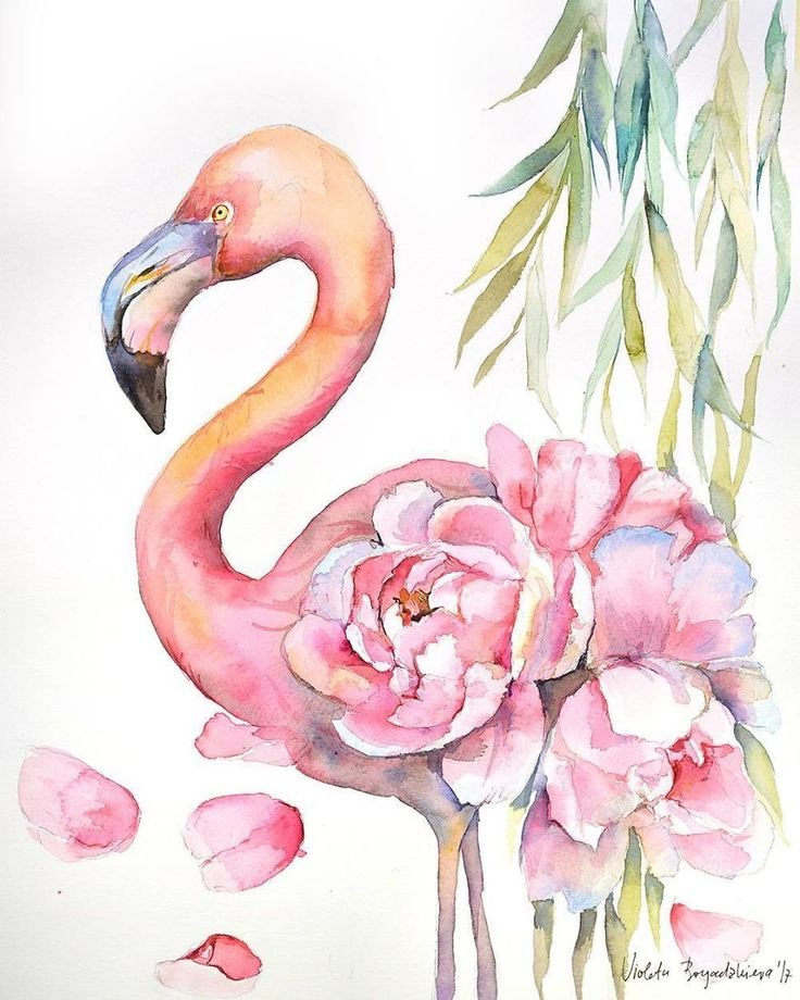 ![Фламинго живопись акварель]()