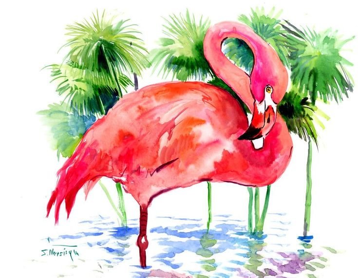 ![Flamingo акварель]()