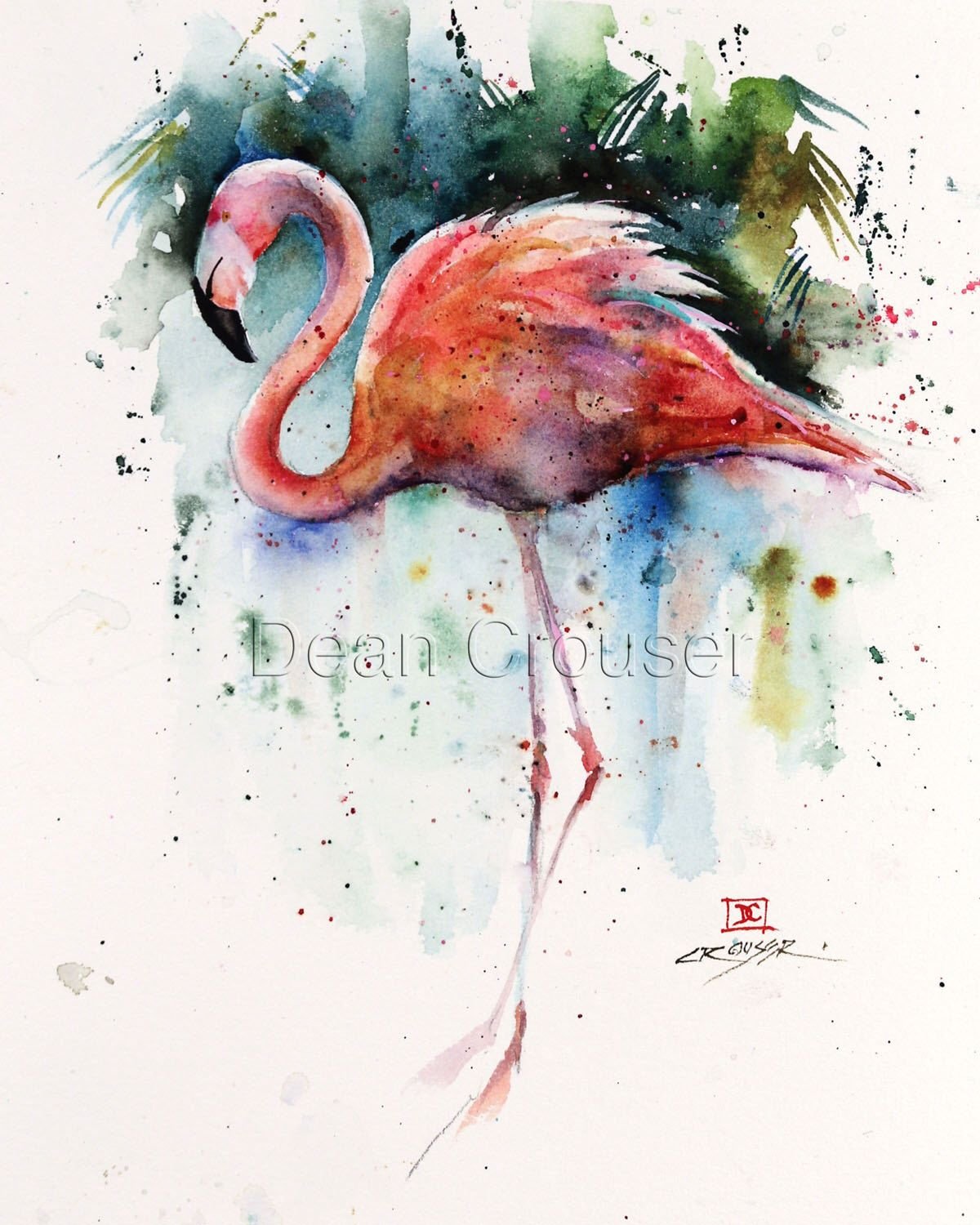 Танцующий Фламинго акварель