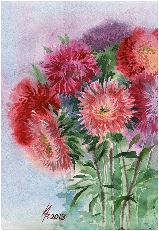 Астры - прекрасные цветы, которые часто становятся объектом внимания художников и любителей акварельной живописи. Рисование акварелью по мокрому позволяет создать особую атмосферу на картине, добавляя ей нежности и легкости. В изображении астр акварельными красками по мокрому можно передать их естественную красоту и изящество. Каждый лепесток, каждая тонкая линия стебля оживают под влиянием воды и растворенных пигментов, создавая мягкие переходы и игру света. Такой рисунок акварелью по мокрому позволяет добиться эффектного и неповторимого образа астр, который будет радовать взгляды и приносить радость своим зрителям.