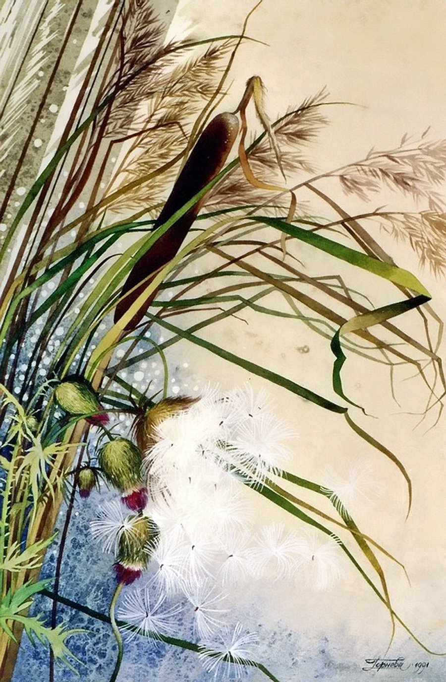![Камыш гуашью]()