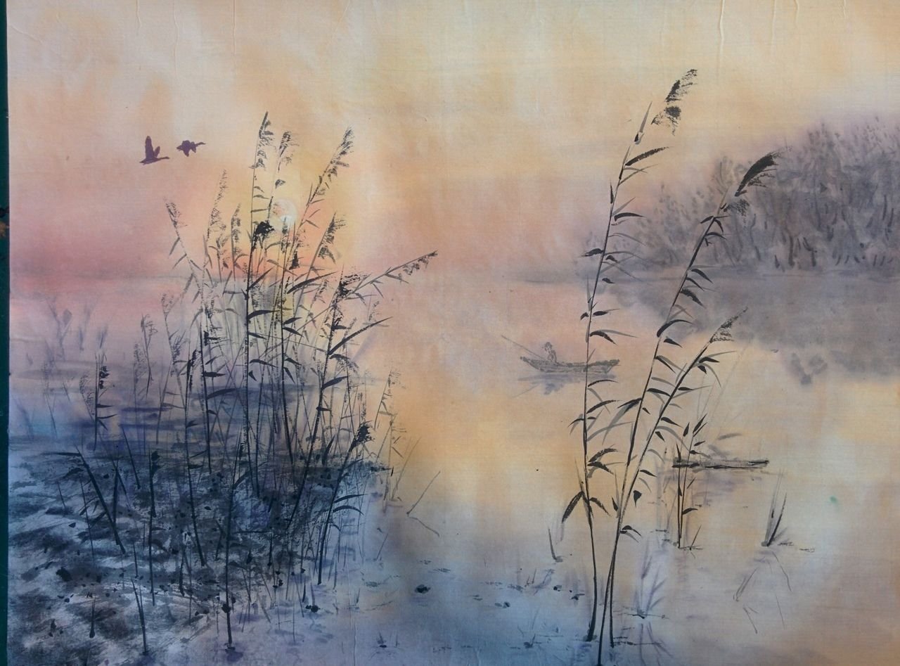 ![Китайский художник озеро камыш]()