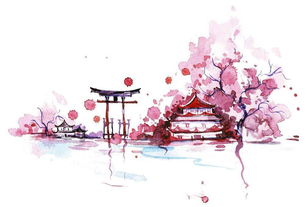 ![Япония в акварельном стиле]()