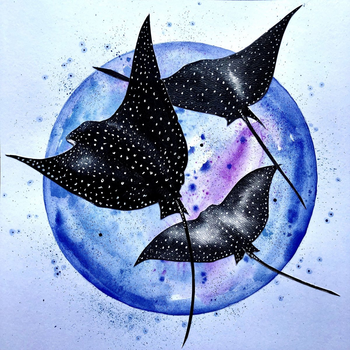 Акварельный скат рисунок - это прекрасное искусство, в котором мастерство акварельной техники сочетается с изображением грациозного и элегантного морского создания. В таком рисунке каждая капля краски оживляет картину, придаёт ей лёгкость и неповторимость. Оттенки бирюзово-голубых и зеленых оттенков акварели создают эффект плавания по воде, рассказывая историю о свободе и гармонии в морских просторах. Каждый штрих передаёт движение и грацию ската, делая его образ живым и реалистичным. Акварельный скат рисунок станет прекрасным украшением интерьера, а также олицетворением красоты и необычности подводного мира.