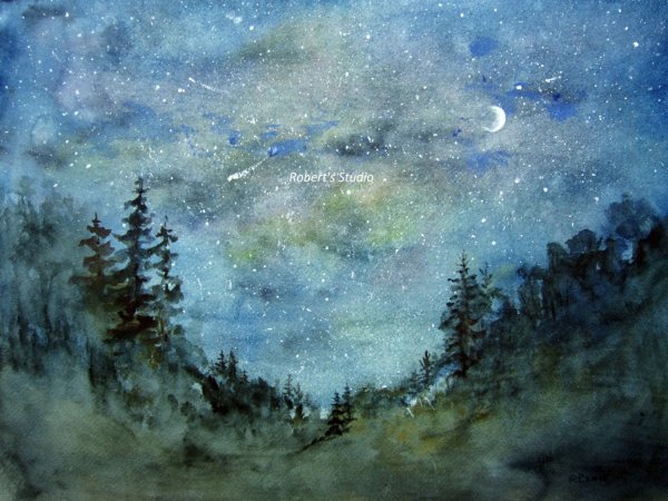 Погрузитесь в магический мир ночного неба с рисунком, созданным акварелью. Каждая капля краски тонко прослеживает контуры звезд и лунного света, создавая неповторимую атмосферу загадочности и тайны. Нежные оттенки голубого и фиолетового переплетаются с глубокими темными тонами, словно отражая бесконечность космоса. Разнообразие текстур и деталей позволяют вам погрузиться в этот ночной пейзаж, почувствовать прохладный воздух и насладиться мерцающей красотой звездного неба. Этот рисунок акварелью приглашает вас провести моменты умиротворения и вдохновения под его волшебным влиянием.