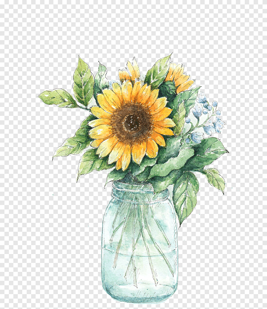 ![Букет в банке с подсолнухами акварель]()