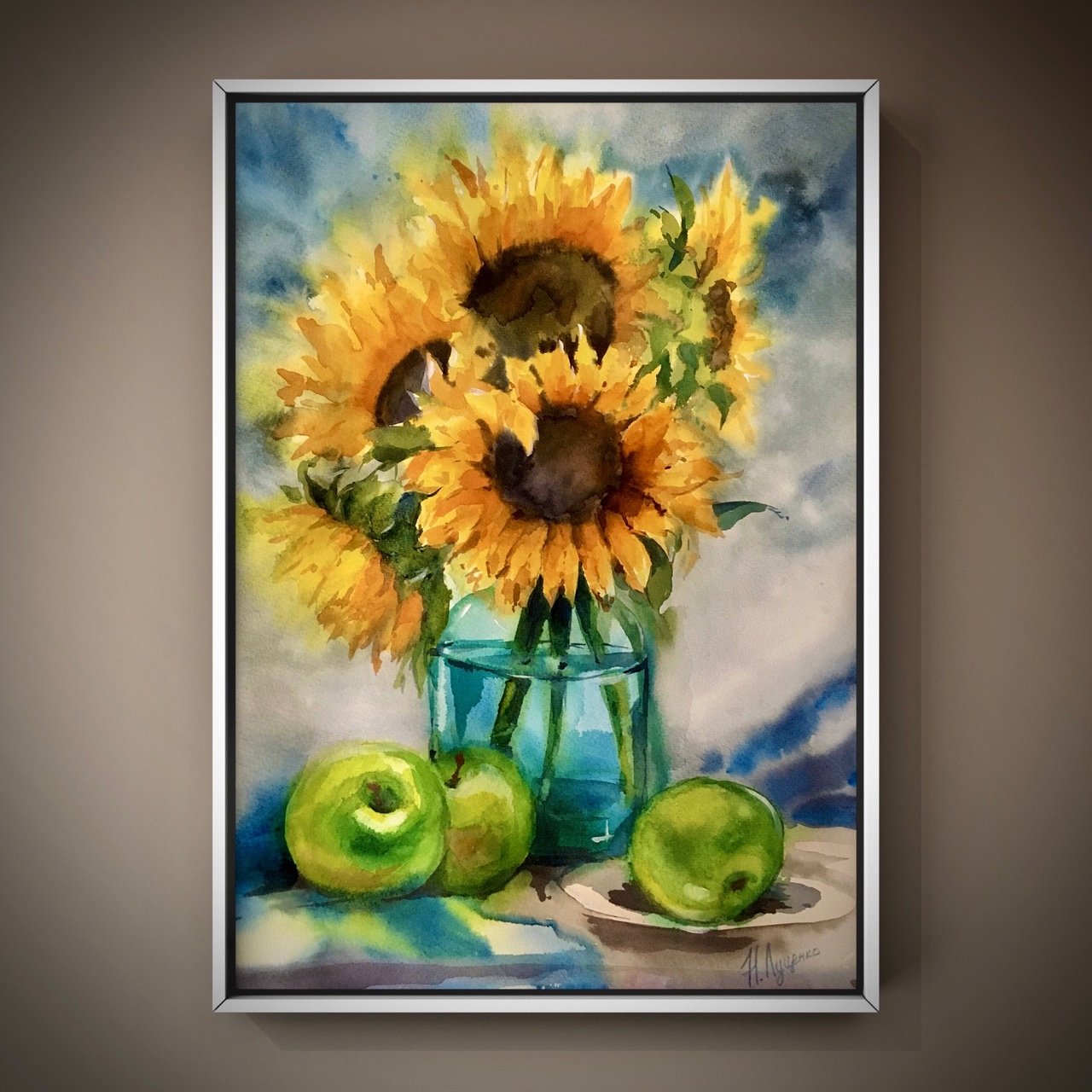 Натюрморт с подсолнухами акварелью