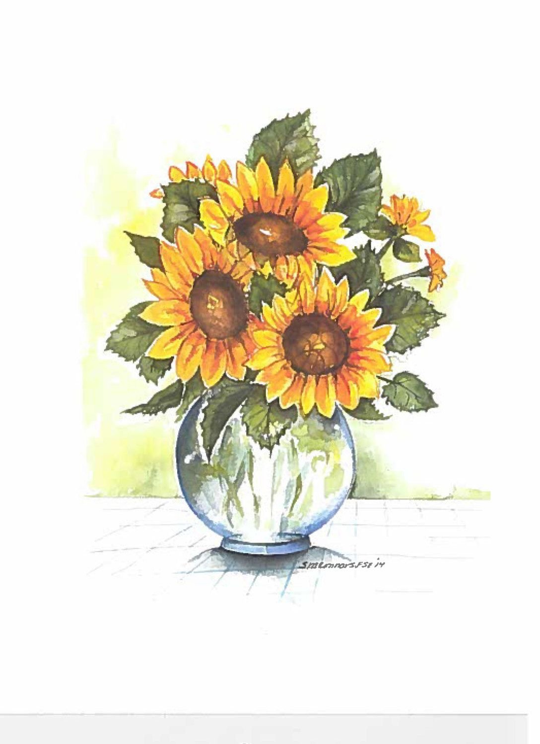 Подсолнухи в вазе рисунок акварелью