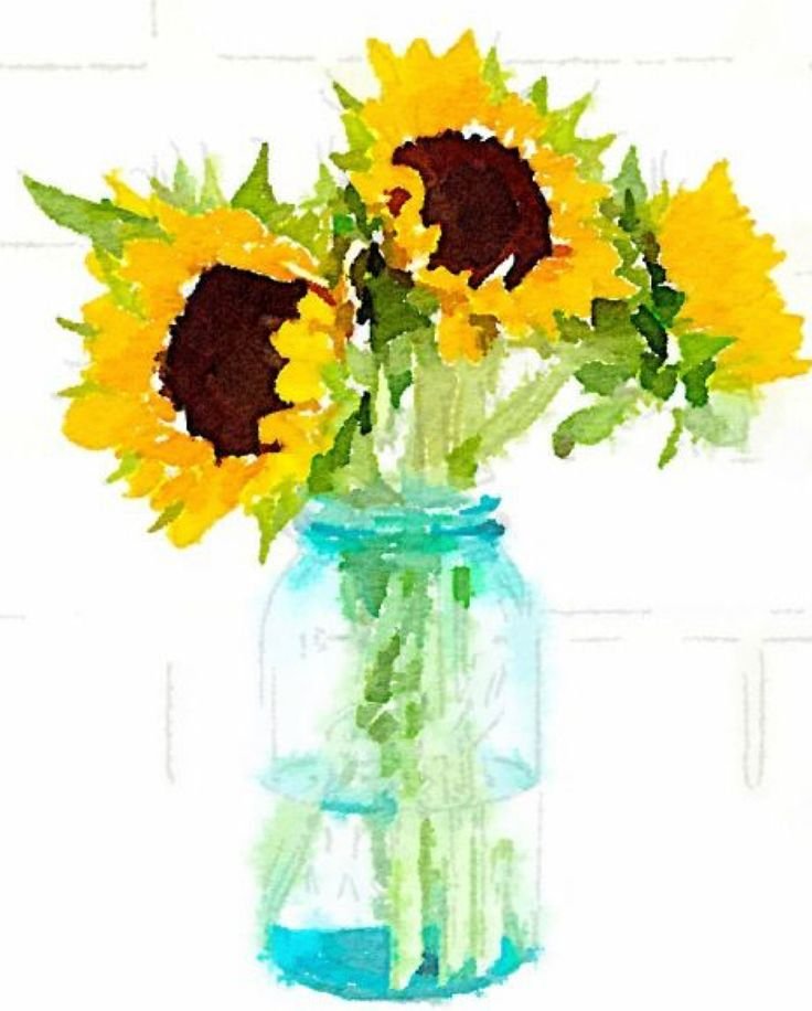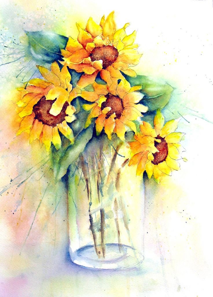 ![Подсолнухи в вазе рисунок акварелью]()