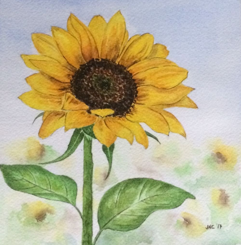 Подсолнух скетч акварелью