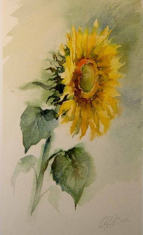 ![Подсолнух скетч акварелью]()