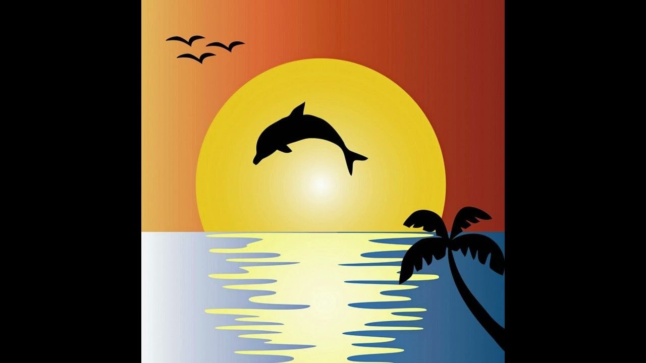Рисование акварелью закат с дельфинами