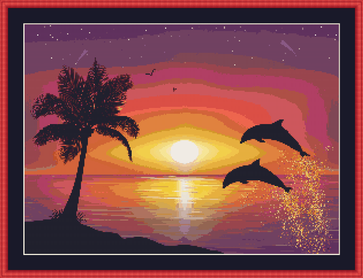 ![Картина дельфины на закате]()