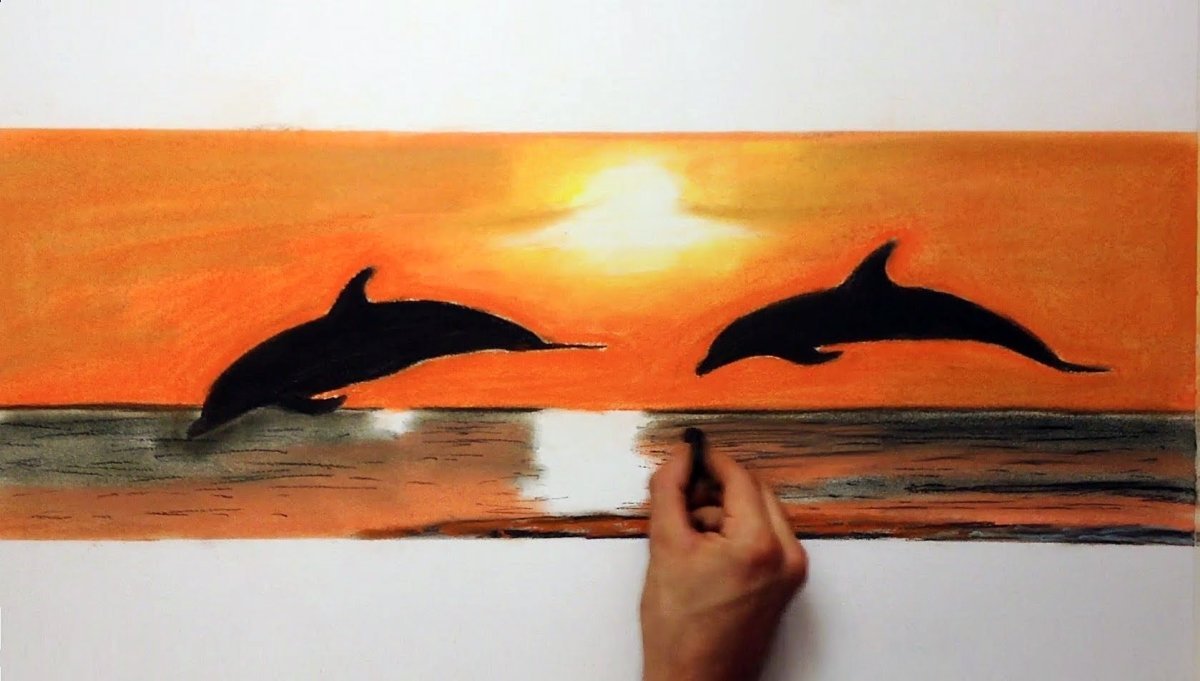 Правополушарное рисование дельфины на закате