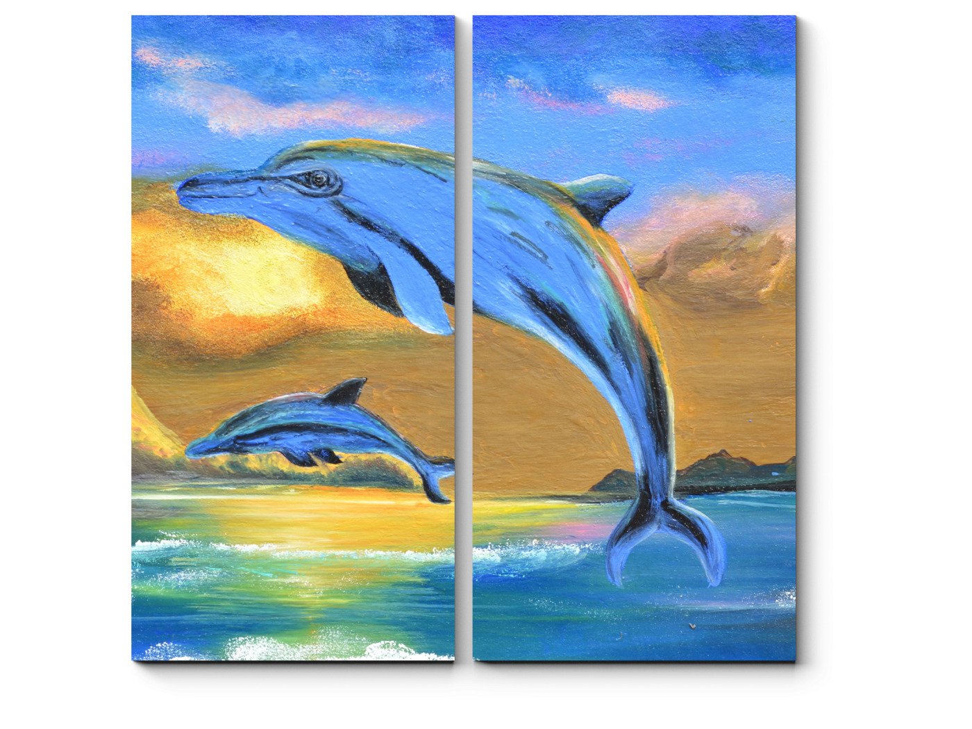Картина дельфины на закате