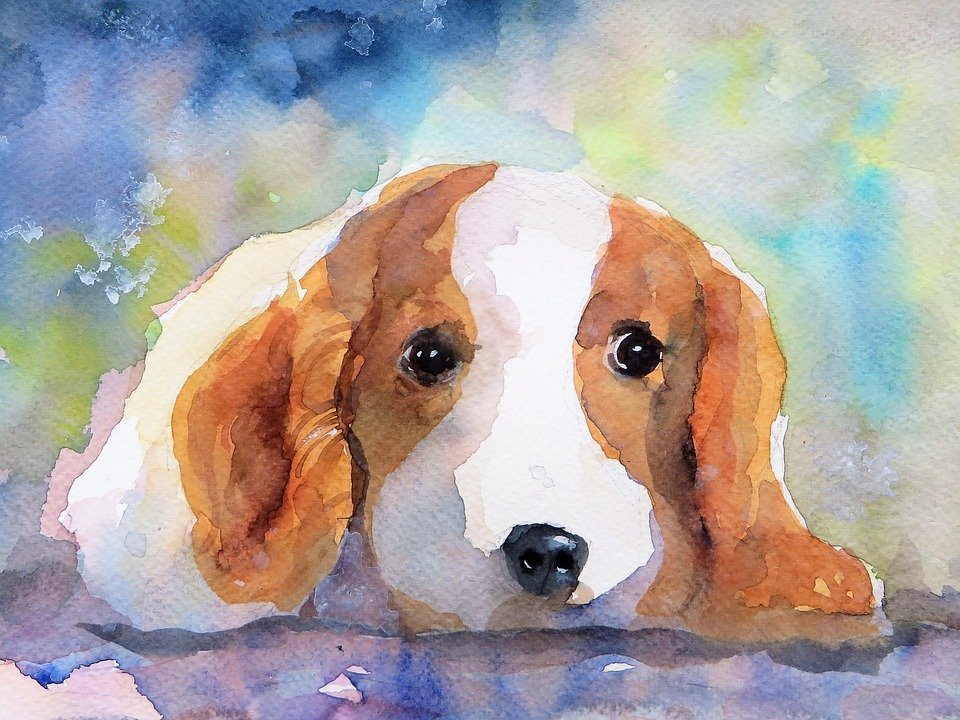 Собака акварелью