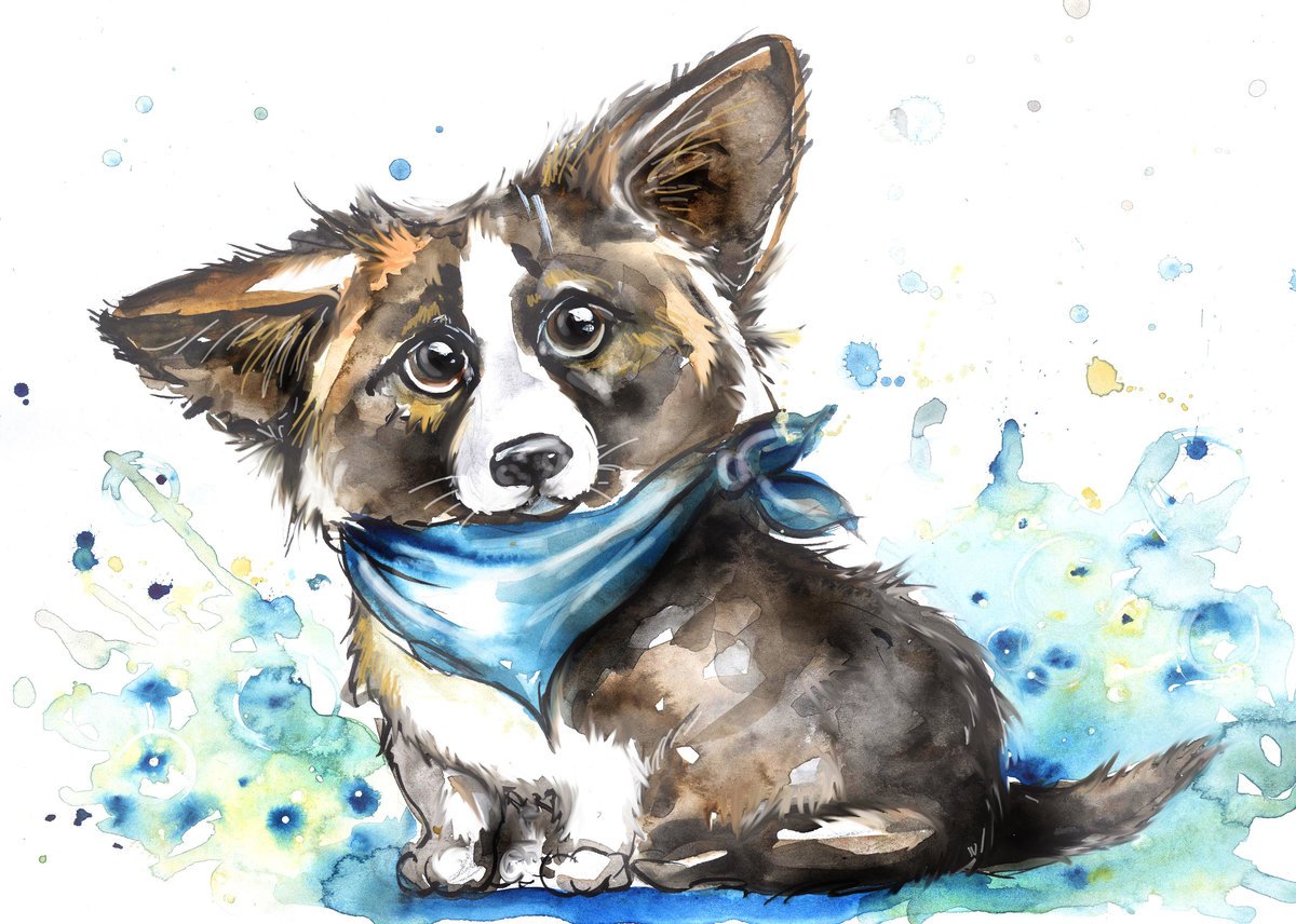 ![Вельш корги пемброк акварелью]()