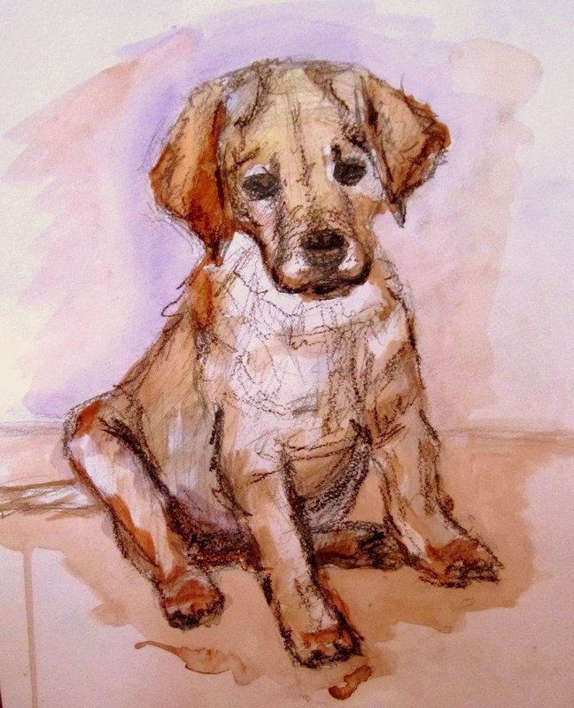 ![Щенок рисунок акварелью]()