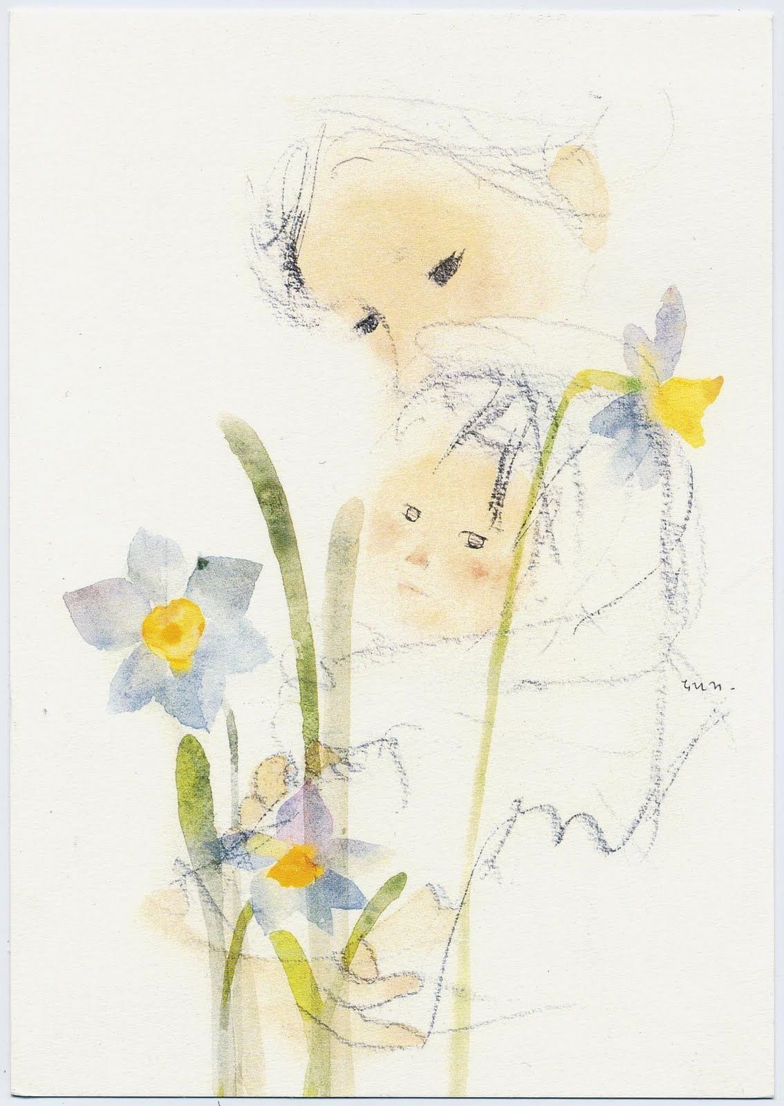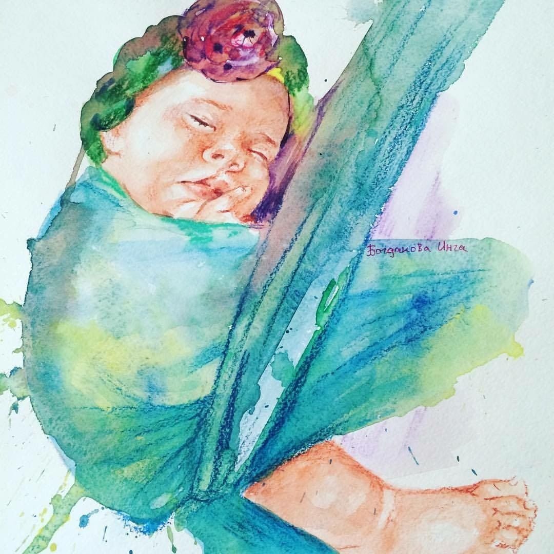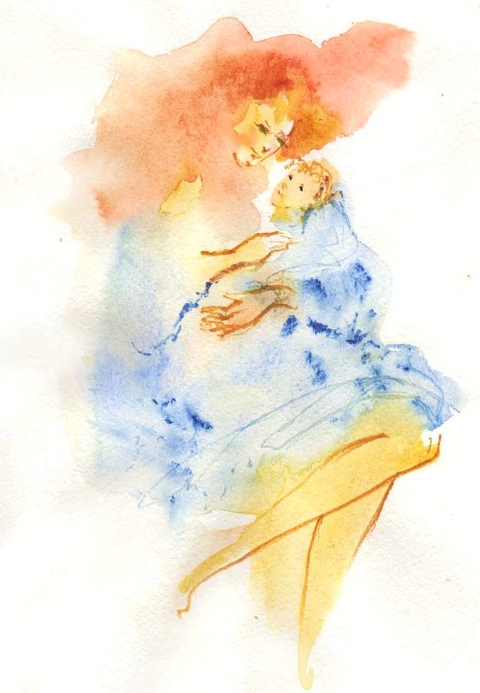 ![Мать и дитя акварель]()